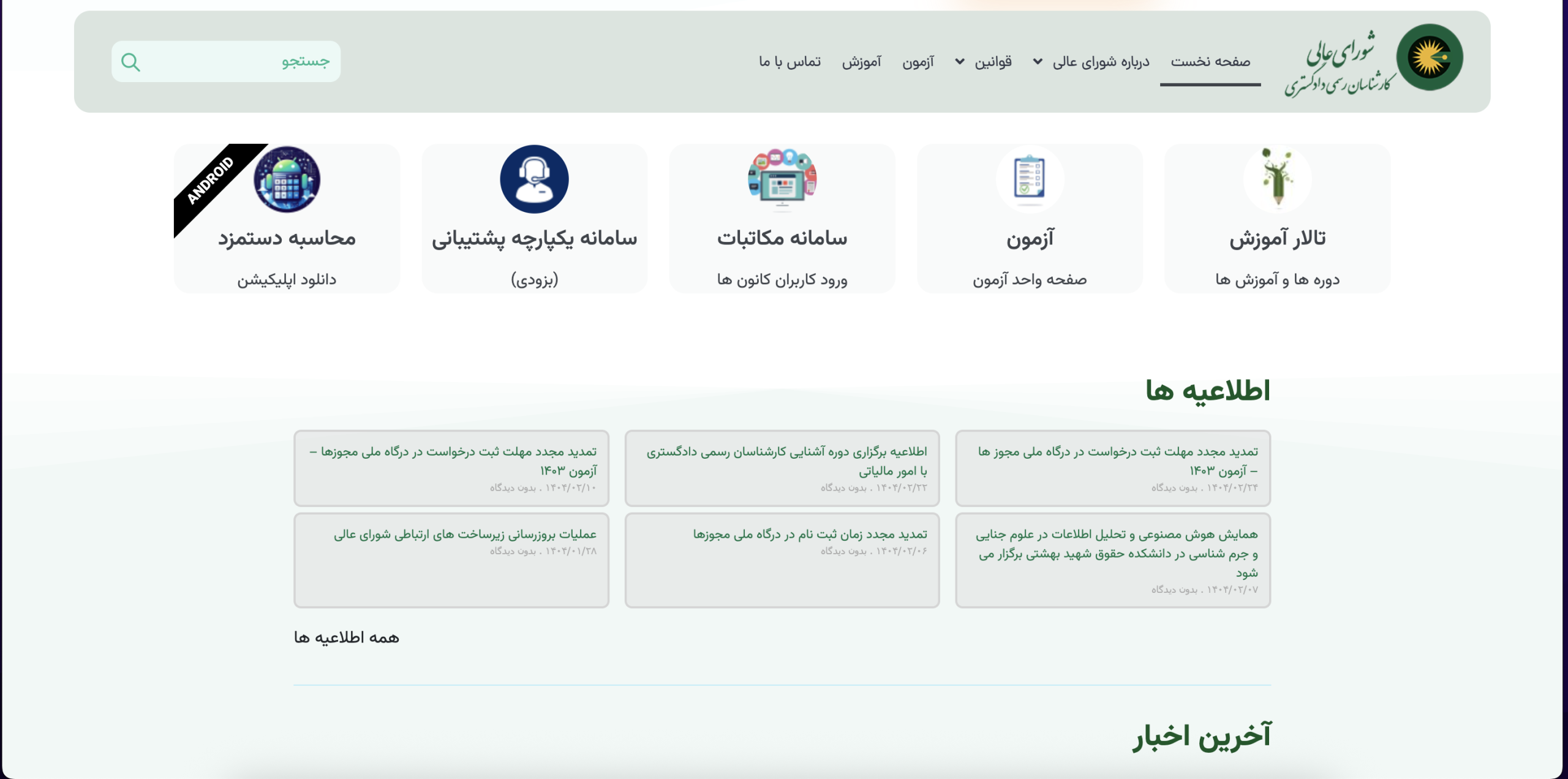 طراحی سایت شورای عالی کارشناسان رسمی دادگستری با پیروی از رنگ سازمانی بصورت سرویس محور