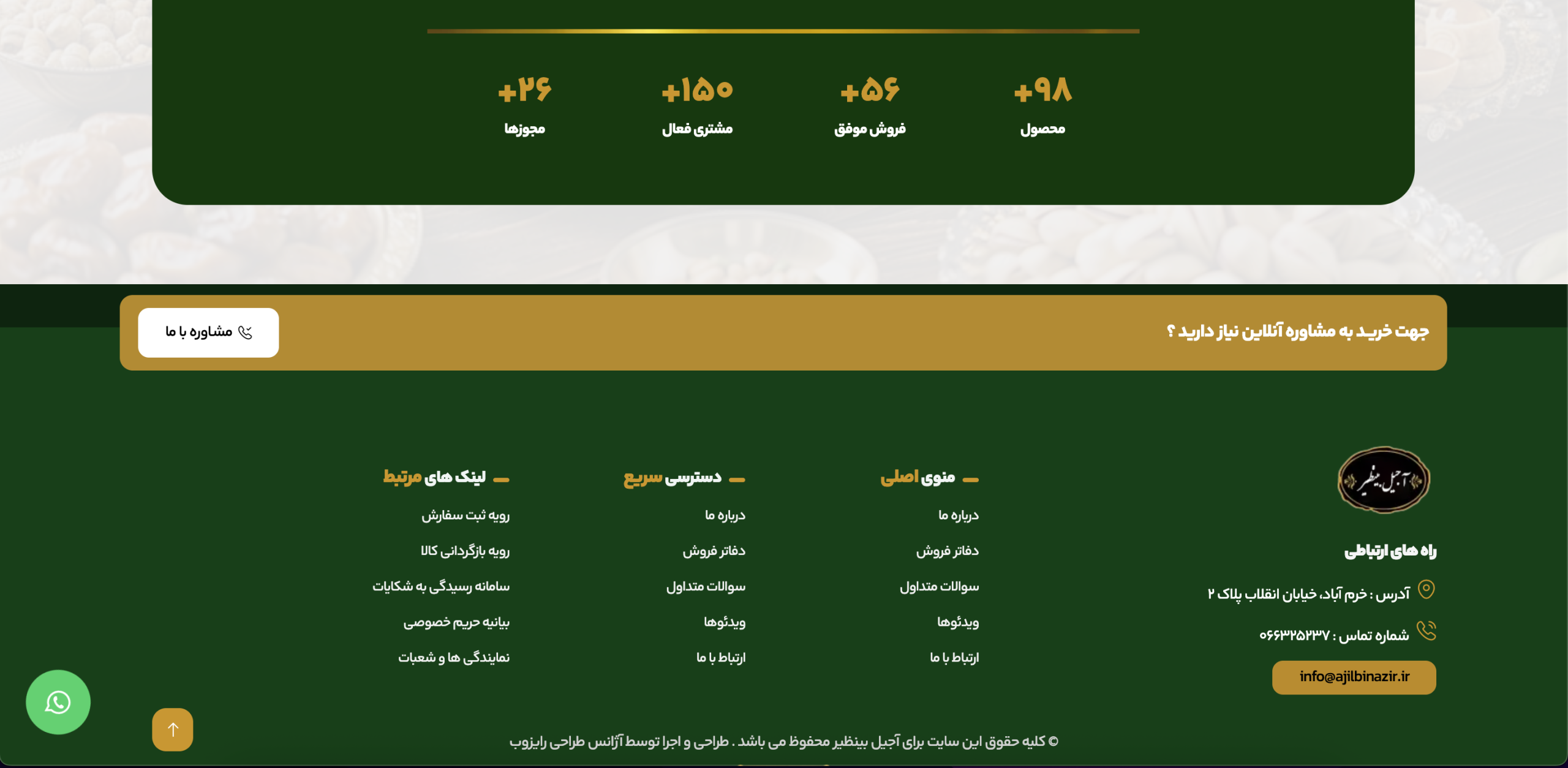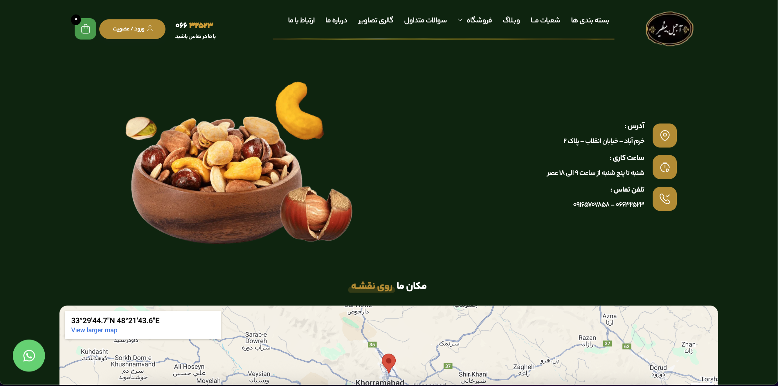 طراحی سایت حرفه ای فروشگاه آجیل بینظیر خرم آباد